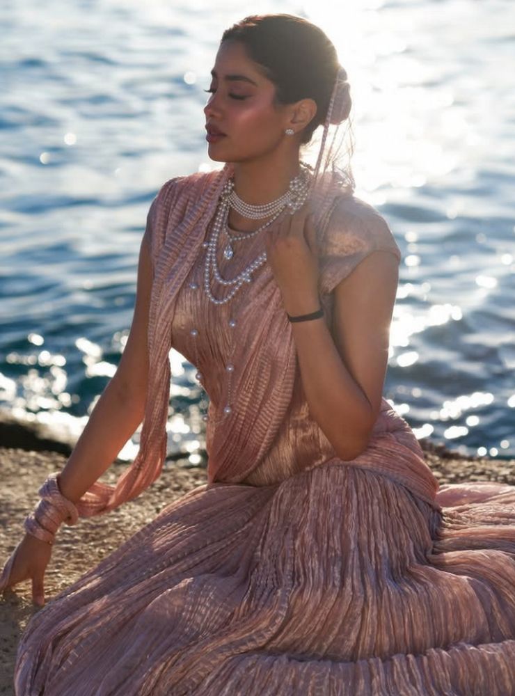 Along with this, Jahnavi carried diamond necklace and pearl necklace around the neck. The actress has also worn diamond earrings in the ears.