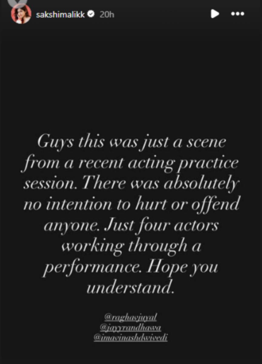 However, Raghav and Sakshi have also given clarification on this viral video. Raghav shared this video on his Insta story and wrote, ‘Friends, it was the rehears of our play script. Please do not treat it true. Just a practice to become a good actor. ‘
